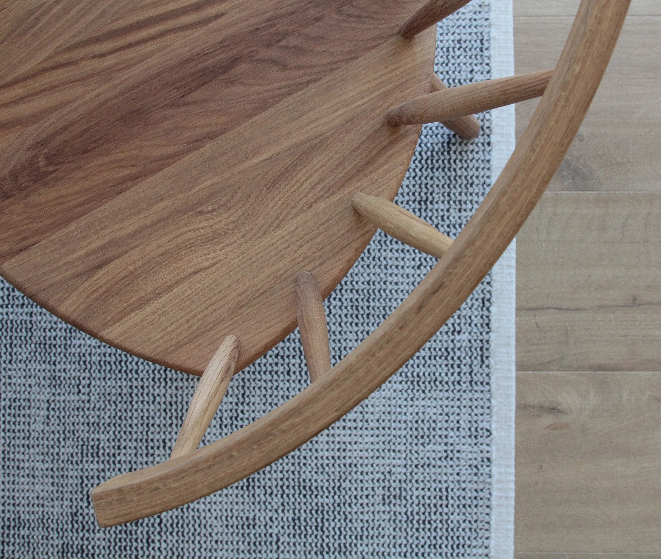 The interior design was similarly muted, allowing the quality of light received from the large windows and carefully placed rooflights to take centre stage. Knitted woolen rugs and handmade oak furniture provided texture enough to create a home.